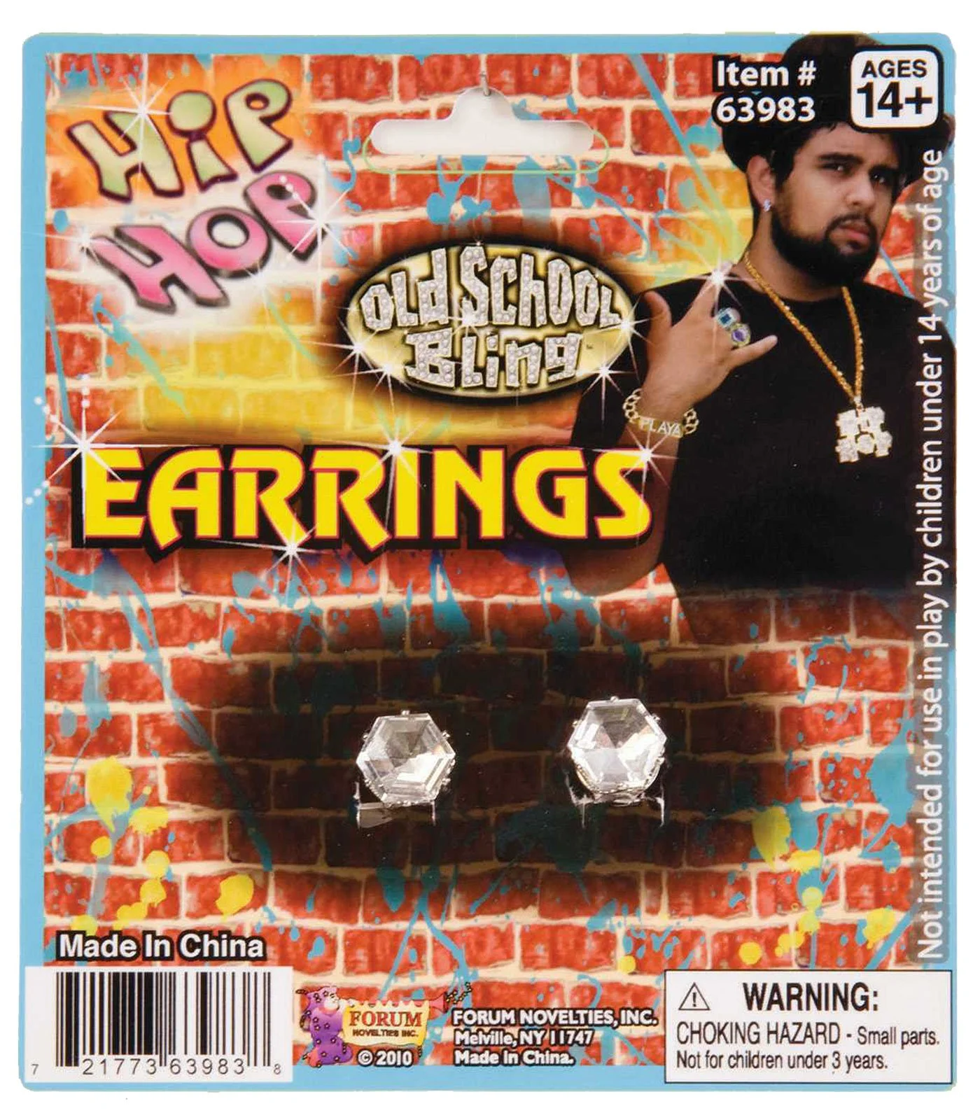 Transform into a stunner when you complete your look with these flashy studs this Halloween! This product includes one pair of Hip Hop Faux Diamond Stud Earrings.