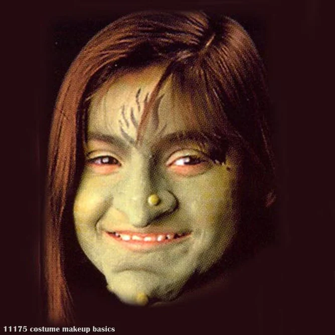 This professional Witch Complete Makeup Kit contains: Witch Nose & Chin, Two Warts, Flesh Latex, Spirit Gum, Colorless Powder, Forensic Green & Black Makeup, Power Puff, Makeup Sponge, and Complete Instructions.
